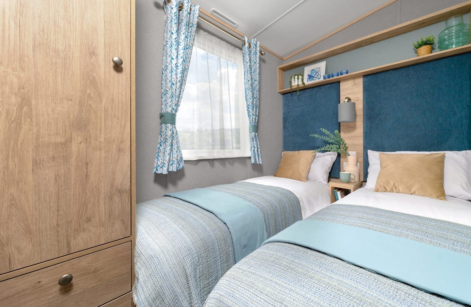 The main bedroom is a calm, generous retreat, complete with a king size lift-up bed offering effortless hidden storage. Thoughtful cabinetry, warm finishes, and considered lighting make each bedroom feel restful.