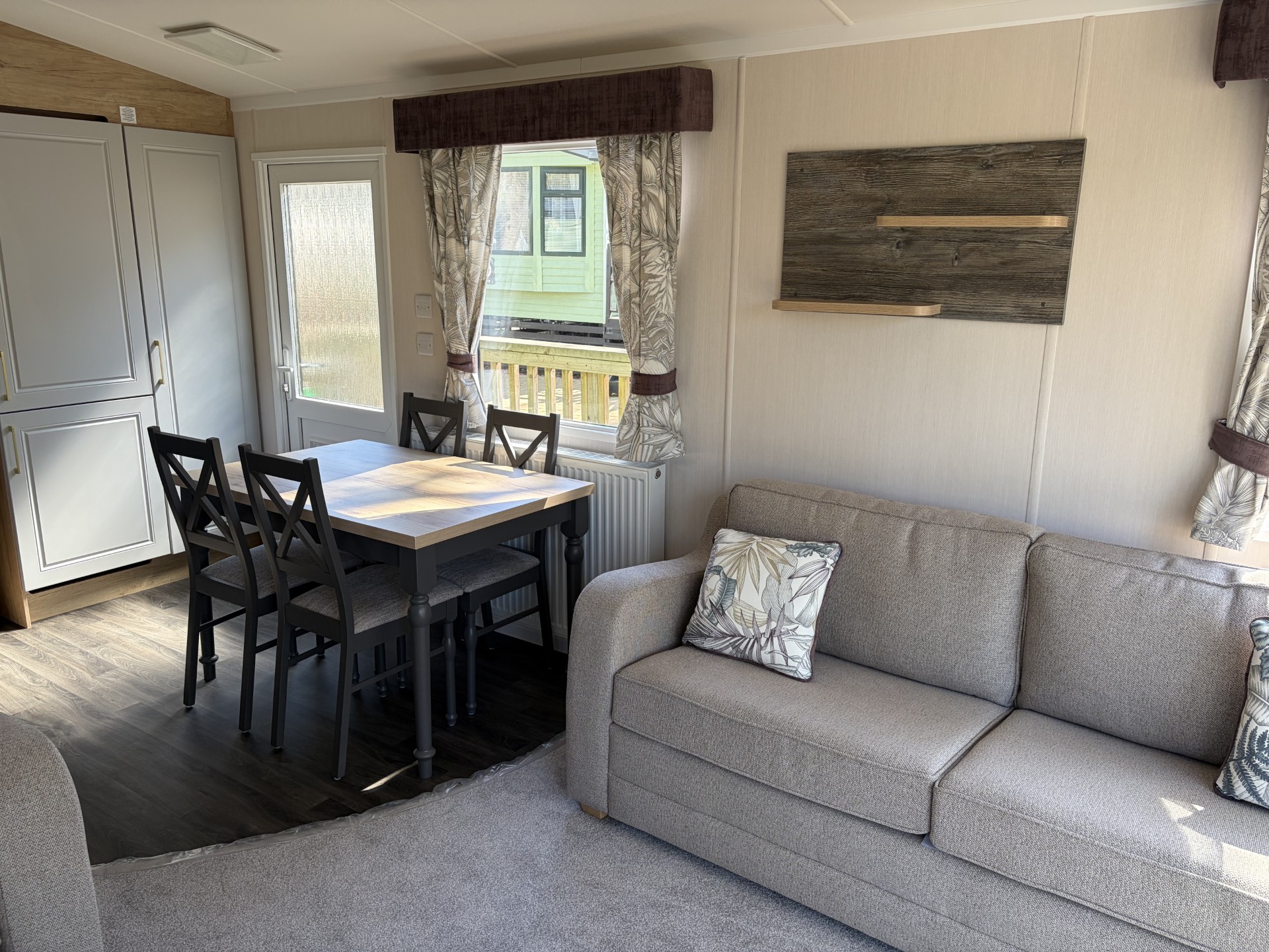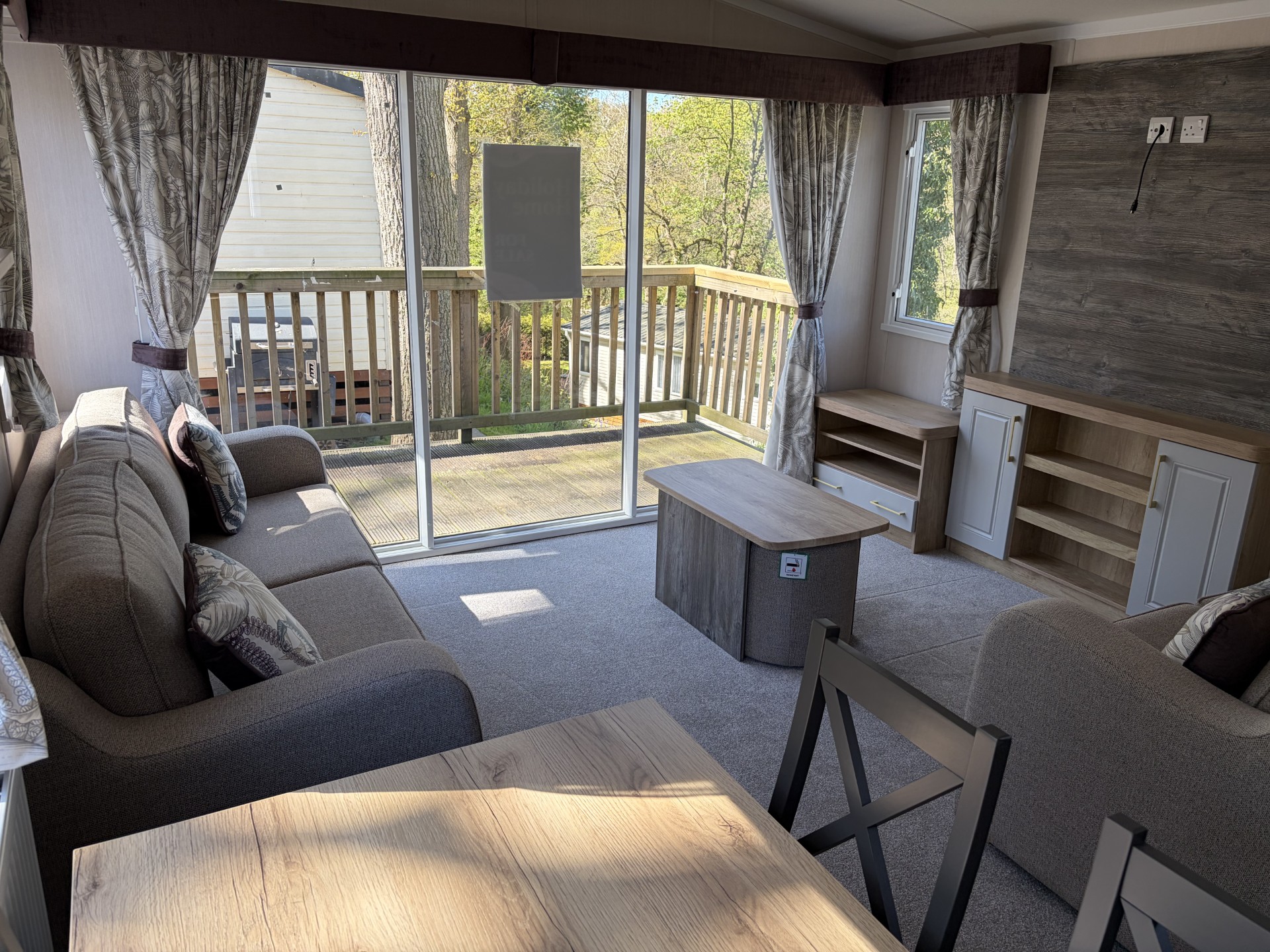 Externally, this holiday home really shines. Positioned on a pleasant elevated pitch, it boasts front and side decking, providing the perfect space to unwind or entertain. From here, you can truly make the most of the beautiful views overlooking the river below—an ideal setting for morning coffee or evening relaxation.