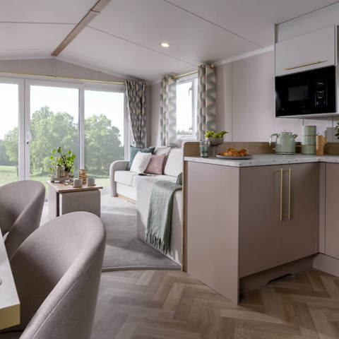 New for 2026, the Burgundy combines a fresh, soft interior palette with contemporary touches — think fresh mint green, Terrazzo style details and hints of gold. Spacious and smartly laid out, it’s a great choice for families who want a stylish holiday home but enjoy their home from home comforts.